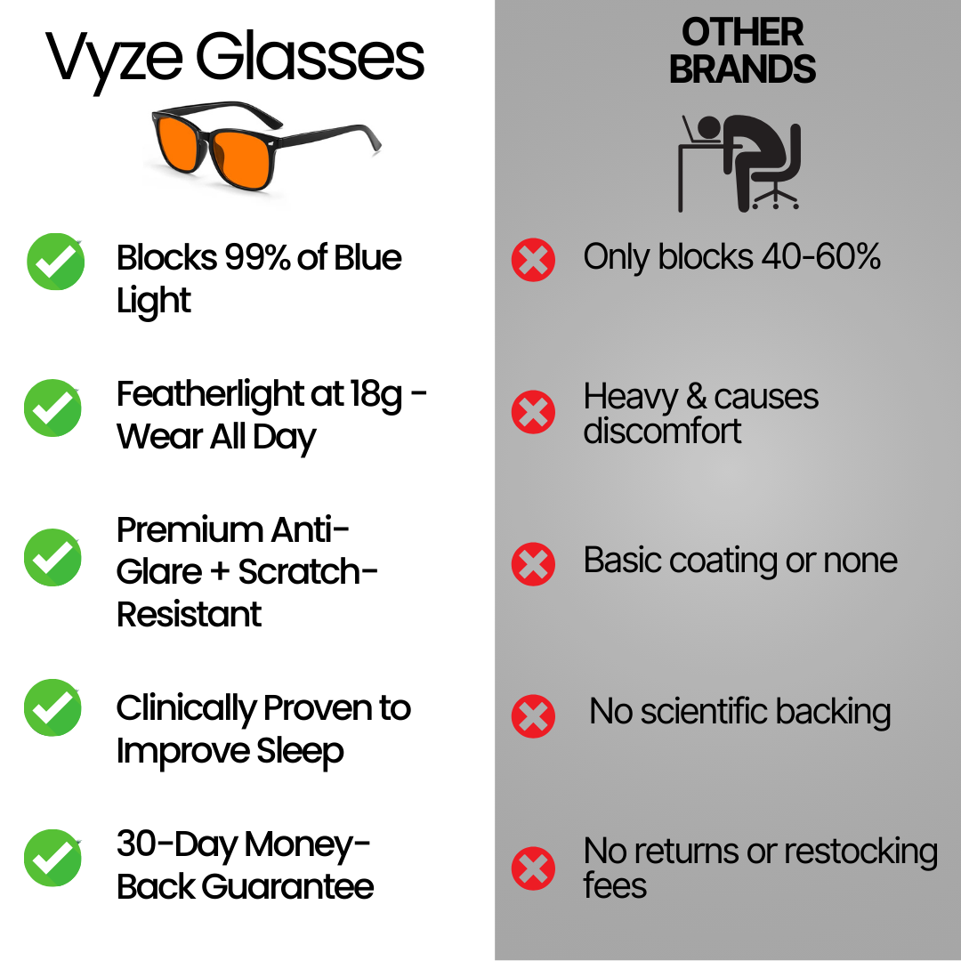 We offer a 30-day money-back guarantee, no questions asked. If you're not satisfied, contact us at support@vyzevision.com and we will guide you to get a full refund/exchange.